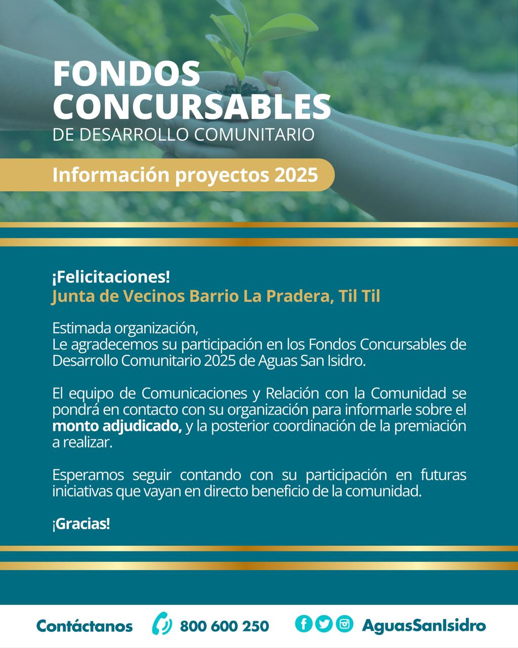 Adjudicación fondo concursable Desarrollo Comunitario Aguas San Isidro